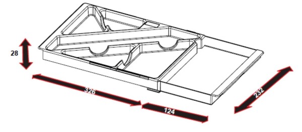 Vanwege zijn uitschuifbaarheid is dit een universele pennenbak welke past op nagenoeg alle verrijdbare ladeblokken en uittrekbare frames (zie voor de afmetingen foto 2)