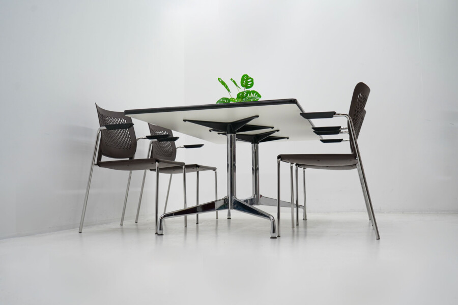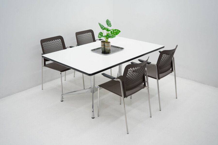 Deze complete set combineert de iconische Vitra Segmented tafel met de comfortabele A490 armstoelen. Een perfecte mix van design, functionaliteit en circulariteit. Of je nu een vergaderruimte, kantine, projectruimte of flexzone wilt inrichten: deze set biedt de kwaliteit en uitstraling die je zoekt.