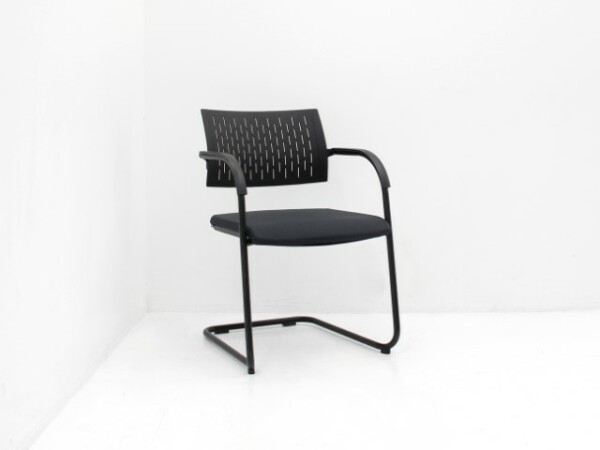 De Bene B_cause vergaderstoelen zijn ontworpen door het Oostenrijkse kwaliteitsmerk Bene en staan bekend om hun functionele ontwerp en zitcomfort. De zitting is bekleed met zwarte stof en biedt prettig comfort, ook tijdens langere vergaderingen. De licht flexibele zwarte kunststof rugleuning ondersteunt de rug op natuurlijke wijze. Dankzij het slede-onderstel en de armleggers zit je stabiel en ontspannen, terwijl de stoel zijn strakke, moderne uitstraling behoudt.