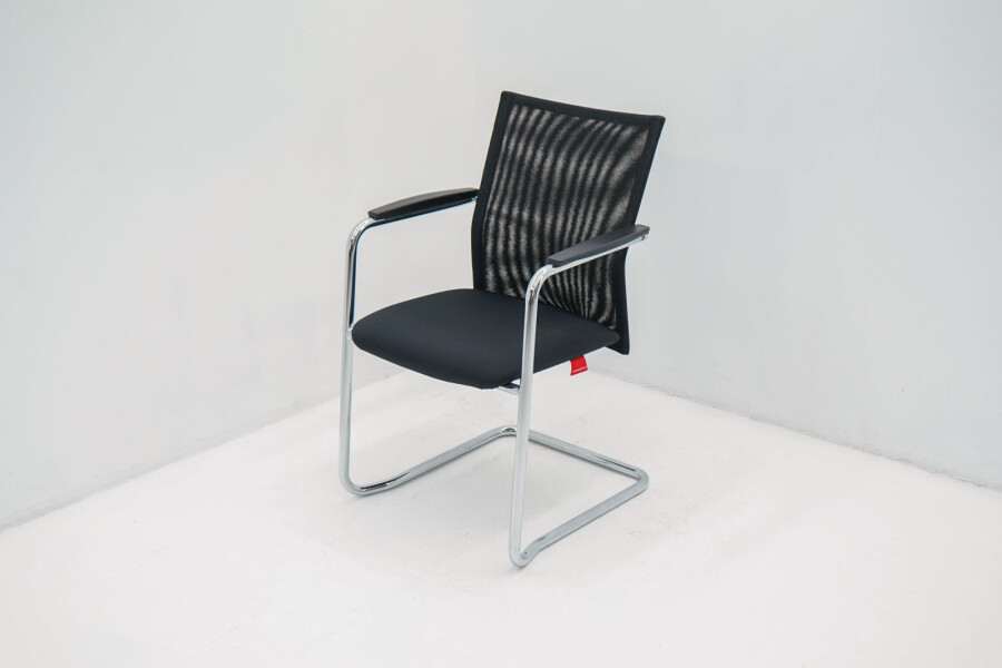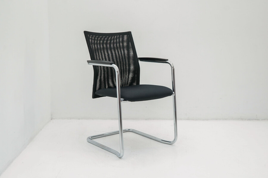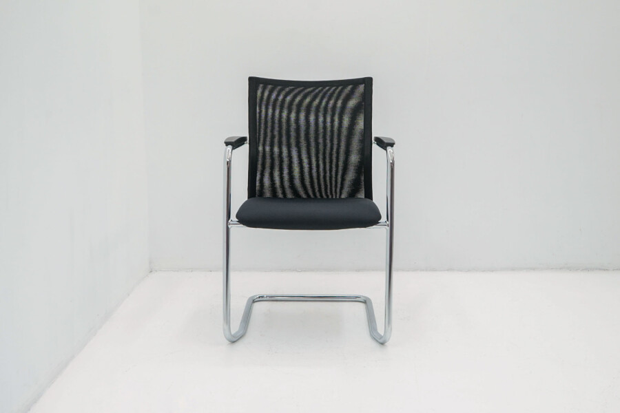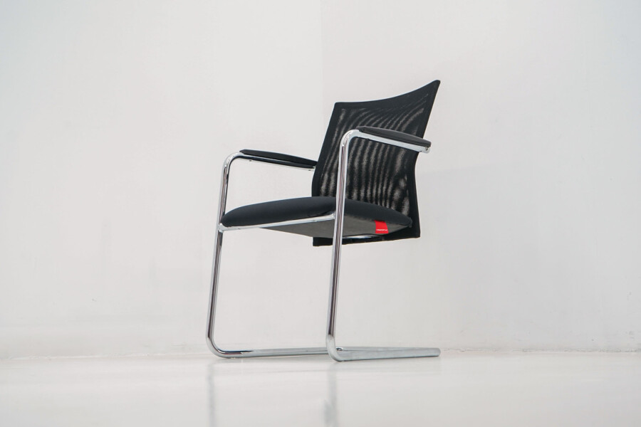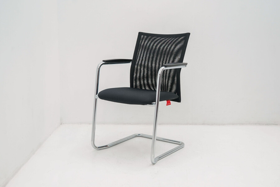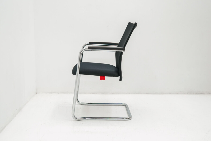 Het verchroomde sledeframe geeft de stoel een moderne, professionele uitstraling en biedt tegelijkertijd een lichte vering bij het zitten. Dit zorgt voor net dat beetje extra comfort tijdens langere vergaderingen. De kunststof armleggers ondersteunen de armen op een prettige hoogte en dragen bij aan een ontspannen zithouding.