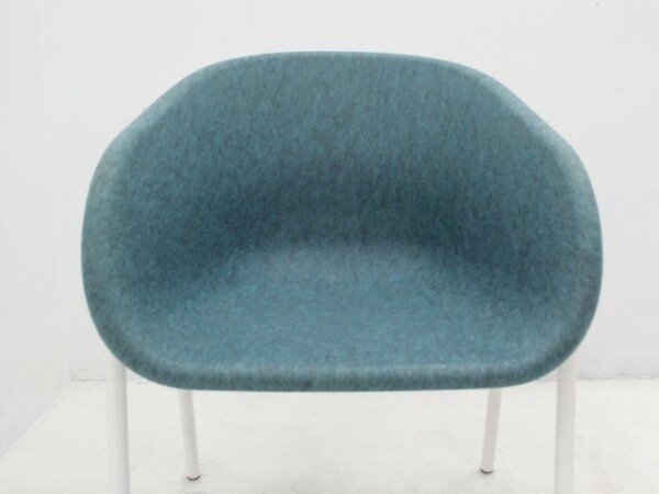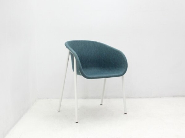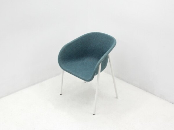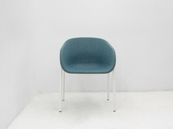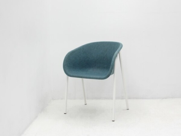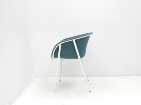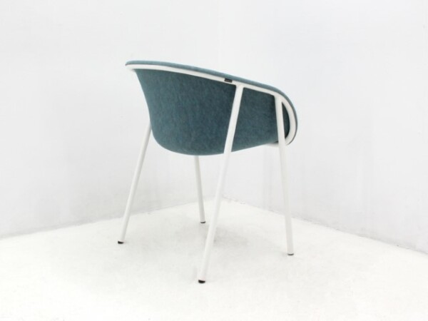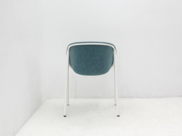 De subtiel gebogen kuip in patrolkleur zorgt voor een comfortabele zit en een warme, zachte uitstraling. Het witte stalen 4-poots onderstel, gemaakt van gerecycled staal, geeft de stoel een moderne en lichte look. Perfect voor vergaderruimtes, creatieve werkplekken of kantines die duurzaamheid willen uitstralen zonder in te leveren op stijl.