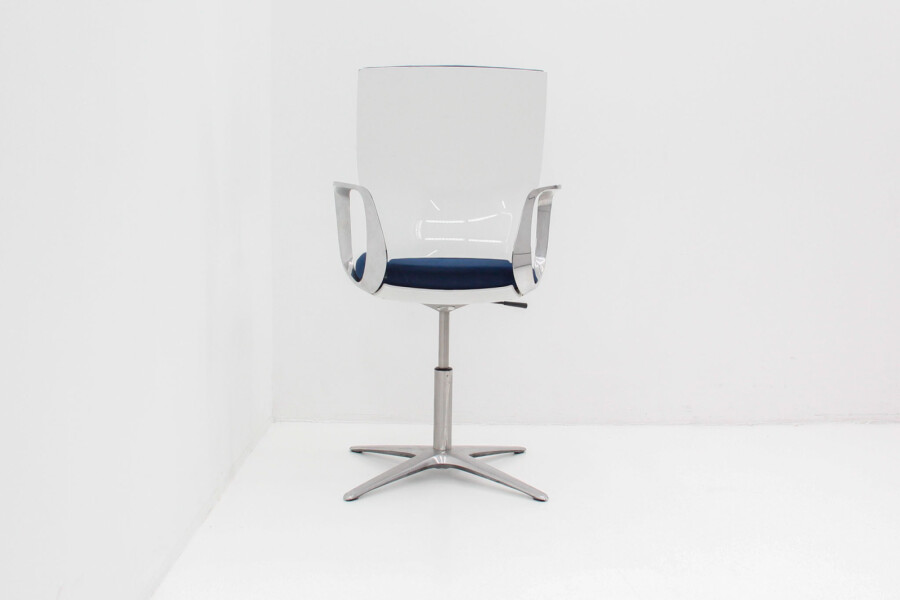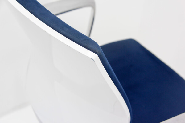 De Klöber Moteo is een ergonomische stoel met een uitgesproken design en een luxe zitbeleving. Ontworpen voor professioneel gebruik, met velours bekleding in diepblauw en subtiele glansaccenten door het chromen frame. De stoel combineert comfort, duurzame materialen en een strakke uitstraling – precies wat je zoekt voor concentratiewerk, calls en vergadersessies.