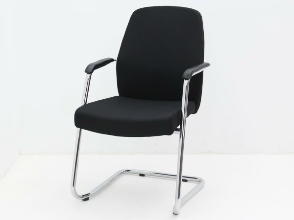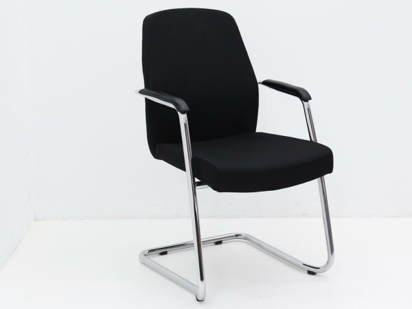 Vergaderstoel Style met hoge rug - bekleding in zwart, slede chroom, stapelbaar