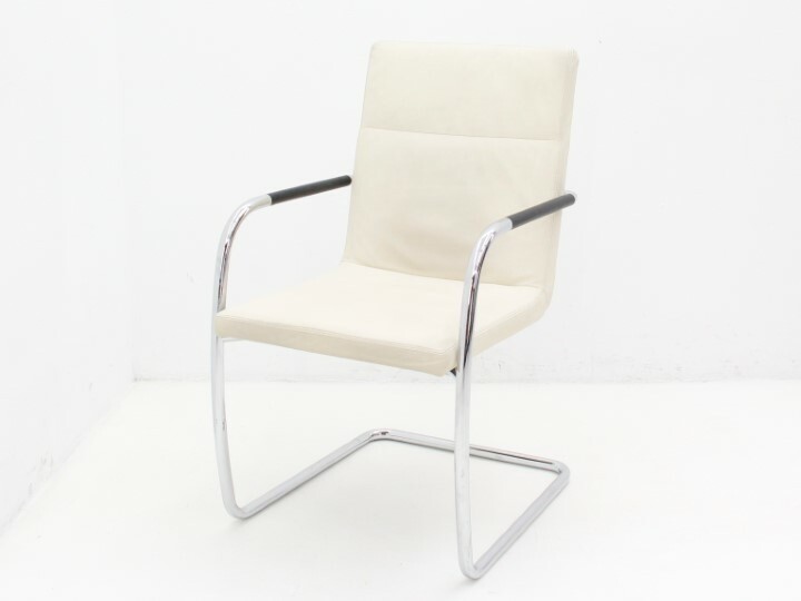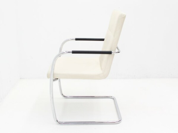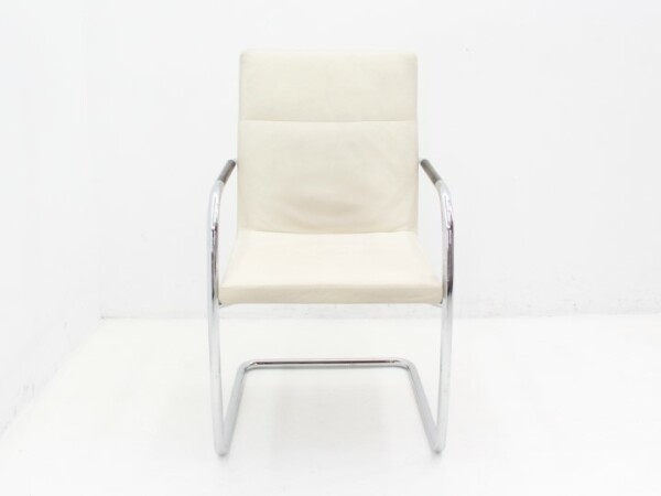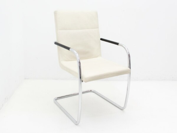 Home > Zitmeubels > Vergaderstoelen > Vergaderstoel Thonet - bekleding leder crème - slede chroom - armleggers zwart