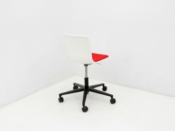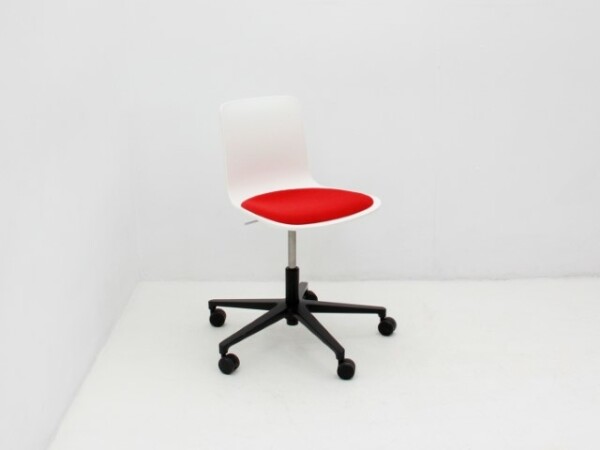 Vergaderstoel Vitra HAL RE Studio - wit - rood zitkussen - 5-poots zwart