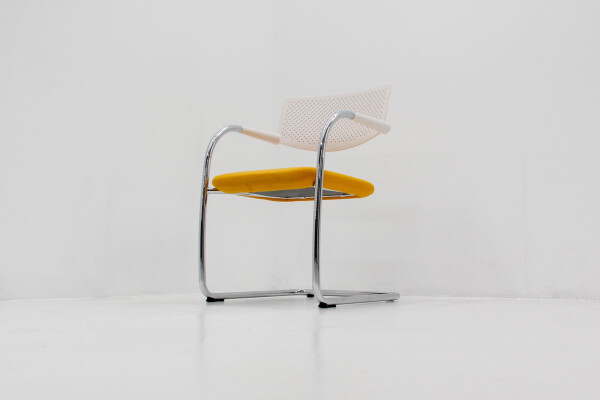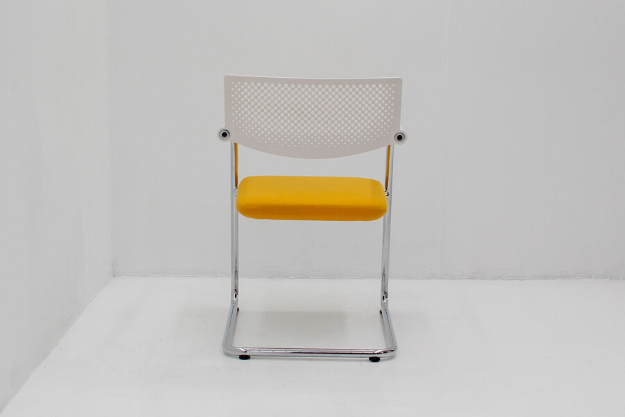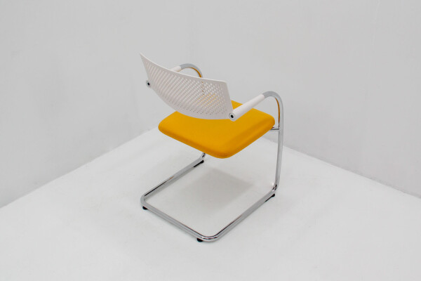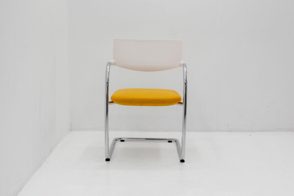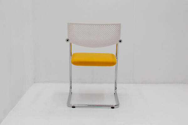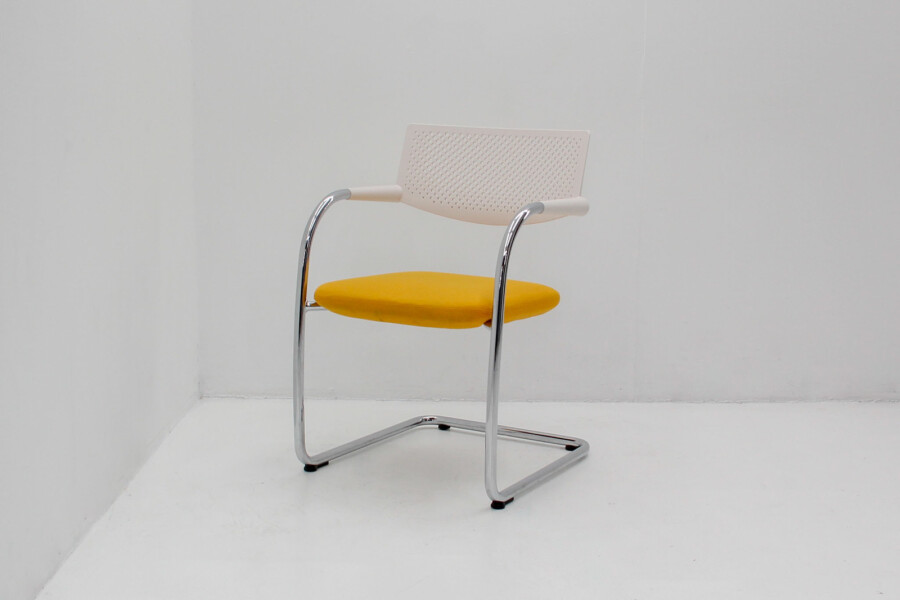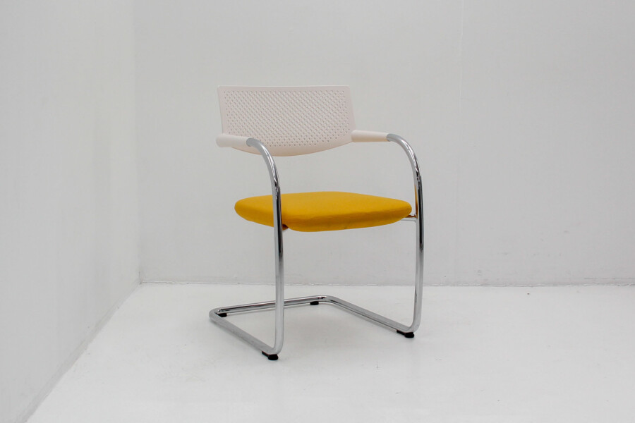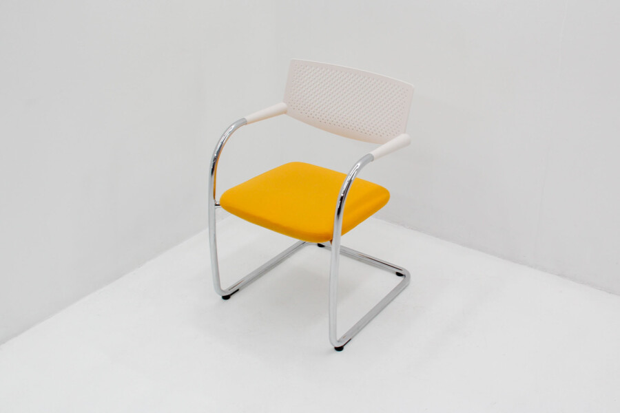 - Frisse uitstraling – witte accenten en gele zitting voor een modern interieur