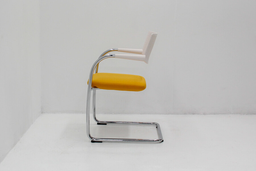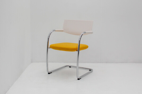 De Vitra Visavis is een verfijnde en iconische bezoekersstoel, ontworpen door Antonio Citterio, een van de meest invloedrijke ontwerpers binnen het moderne kantoorinterieur. Vitra staat bekend om zijn compromisloze kwaliteit en tijdloze esthetiek, en de Visavis vormt daarop geen uitzondering. Met zijn elegante sledemodel, slimme ergonomie en subtiele materiaalcombinaties is dit een stoel die in elke professionele omgeving direct vertrouwd voelt.