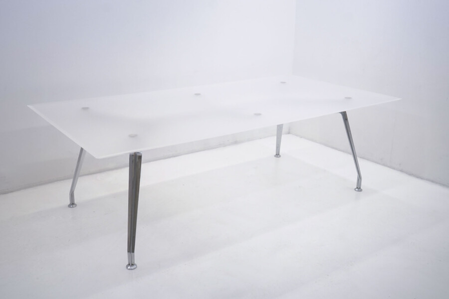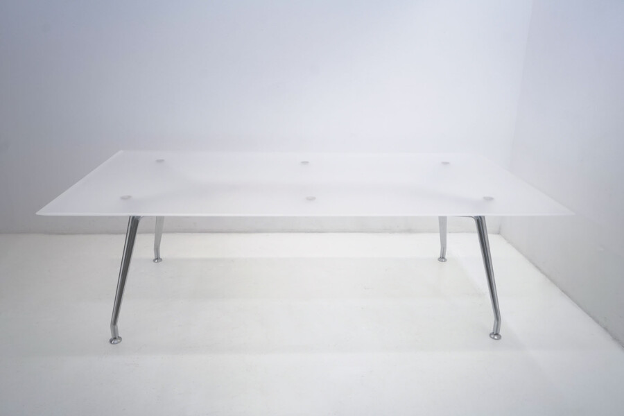Met zijn royale afmeting van 240 x 120 cm biedt deze tafel volop ruimte voor overleg, presentaties en samenwerking. Het witte melkplastic werkblad zorgt voor een strakke, moderne basis, terwijl het slanke chroomkleurige 4-poots onderstel de tafel een lichte maar krachtige uitstraling geeft. Degelijk, stabiel en gemaakt voor intensief professioneel gebruik.