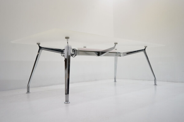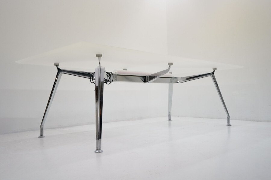 De Ahrend 1200 vergadertafel is allesbehalve een stille achtergrondspeler. Dit is een tafel met karakter. Ontworpen door Ahrend, het Nederlandse kantoormeubelmerk dat bekendstaat om functioneel design, degelijke bouw en vooruitstrevende oplossingen voor de werkplek.