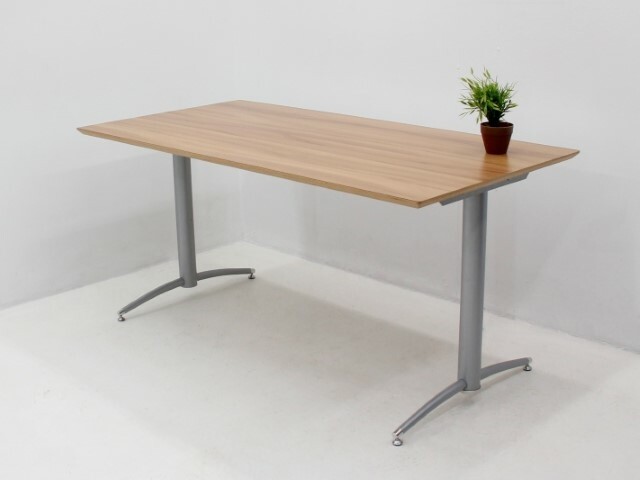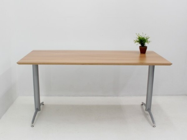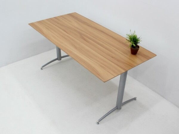 Vergadertafel Lande Artifort  - 160x80x75cm(bxdxh) - blad walnoot -T-poot alu grijs