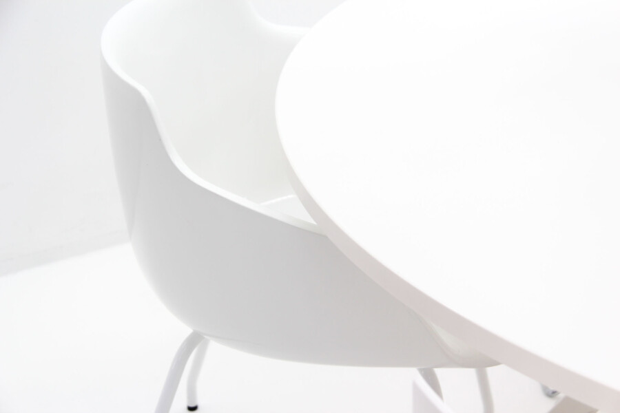 De ronde vergadertafel Ø140 cm is de ideale keuze voor overleg in kleine tot middelgrote teams. Het royale, ronde blad bevordert gelijkwaardige gesprekken en oogcontact – precies wat je wilt tijdens brainstorms, scrums en dagstarts. Het witte melamine werkblad (25 mm) is slijtvast, gemakkelijk te reinigen en blijft representatief, terwijl het 4-poot onderstel van metaal in wit voor stabiliteit en een rustige, professionele uitstraling zorgt.