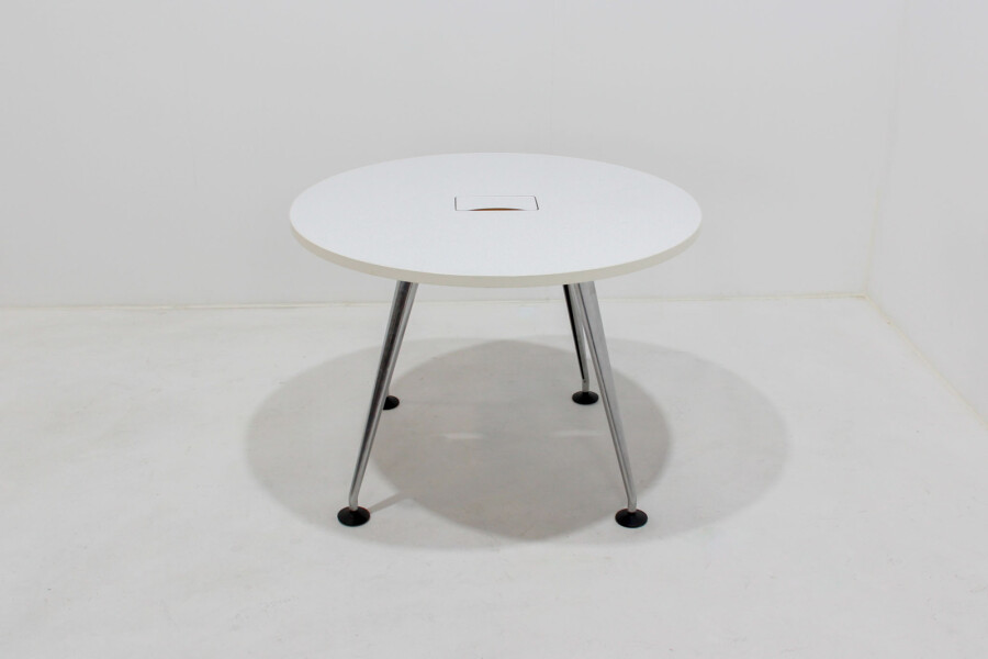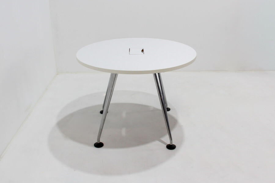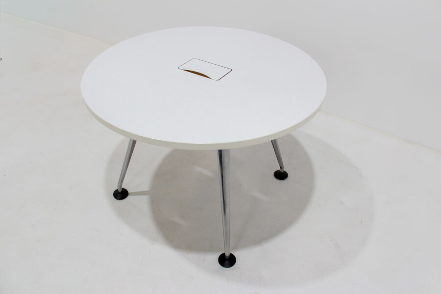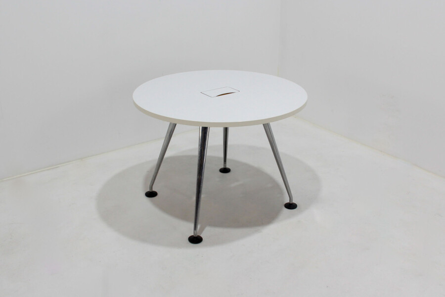 Het witte melamine blad van 25 mm oogt strak en modern, en is bovendien onderhoudsvriendelijk – perfect voor dagelijks gebruik in een professionele omgeving. Dankzij het ronde ontwerp ontstaat een natuurlijke dynamiek waarin iedereen gelijkwaardig aan tafel zit, iets wat ontwerpers en organisaties waarderen bij creatief en besluitvormend werk.