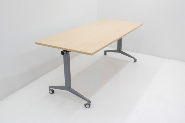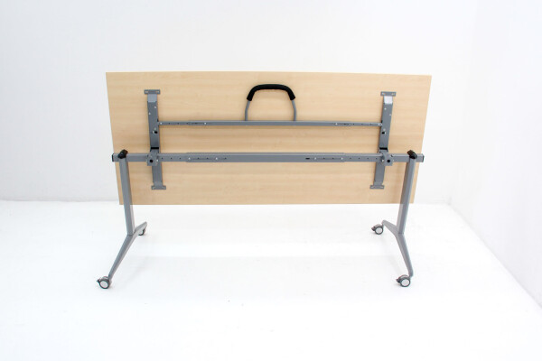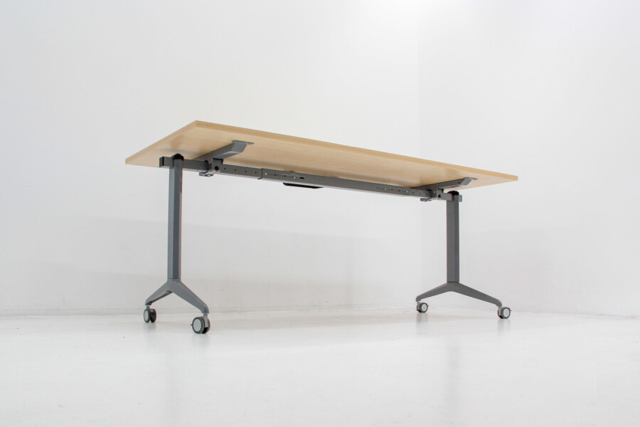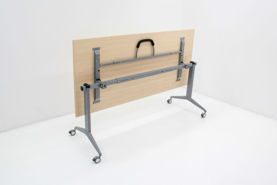 De verrijdbare klaptafel 180 × 80 cm in ahorn met aluminiumgrijs onderstel is een veelzijdige en praktische tafeloplossing voor vergaderruimtes, trainingsruimtes en flexibele werkplekken. Dankzij het stevig gelaste onderstel en het duurzame melamine blad combineert deze tafel stabiliteit met een professionele uitstraling.