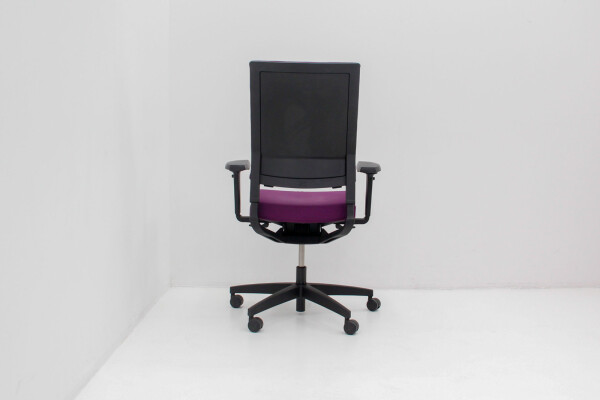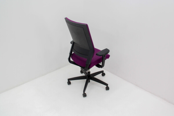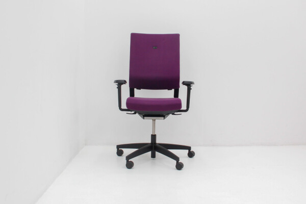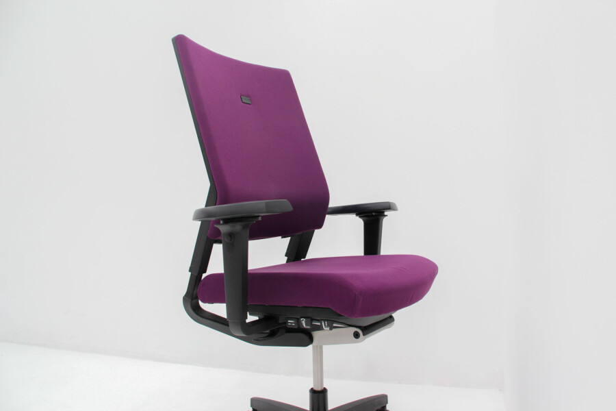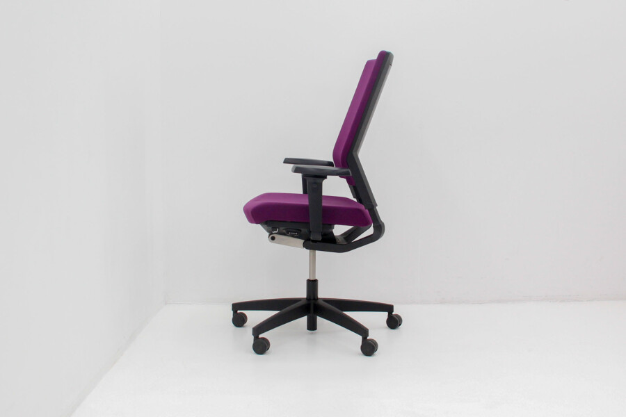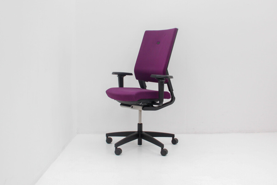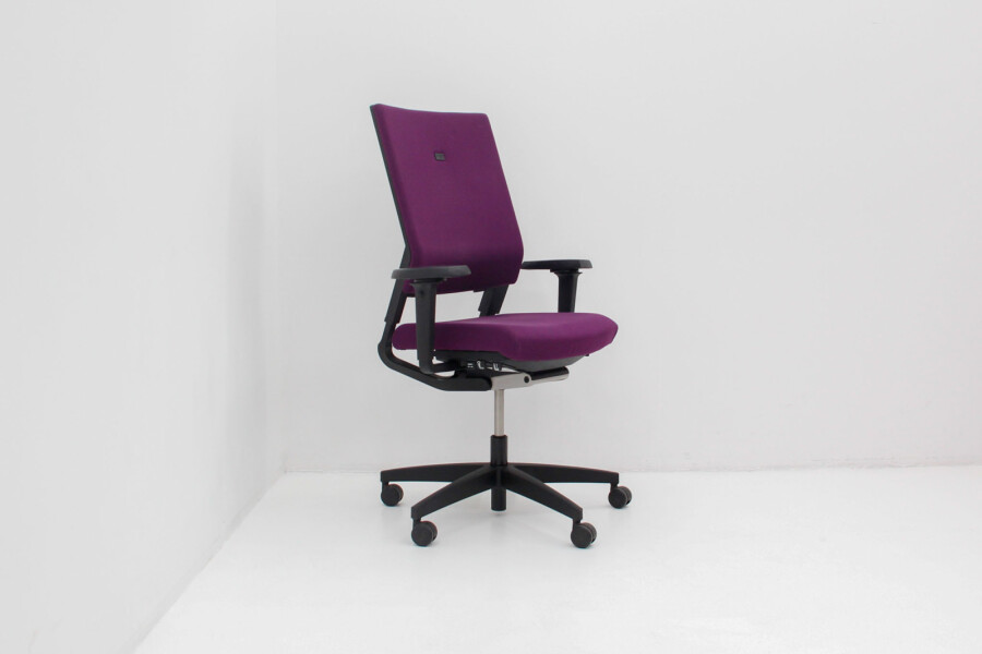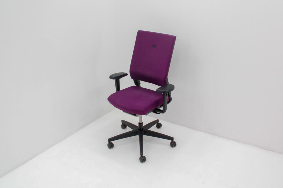 Viasit staat bekend om doordachte ergonomie en degelijke afwerking. In deze uitvoering is de stoel gestoffeerd in stof (paars) met een zwart frame; een strakke, representatieve look die in elke kantooromgeving tot zijn recht komt. Praktisch, duurzaam en klaar voor lange werkdagen.