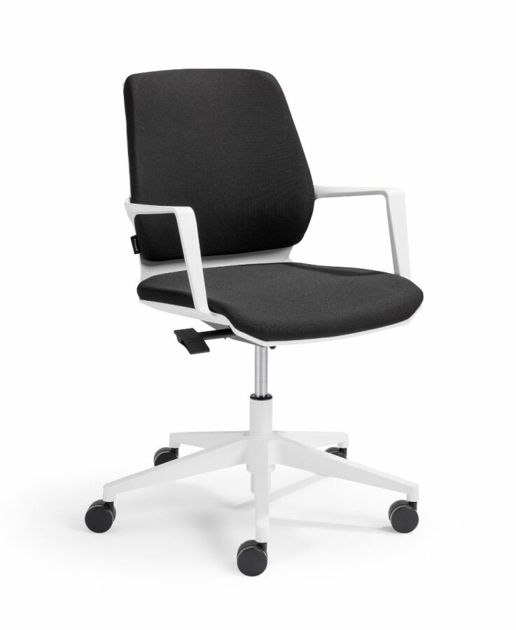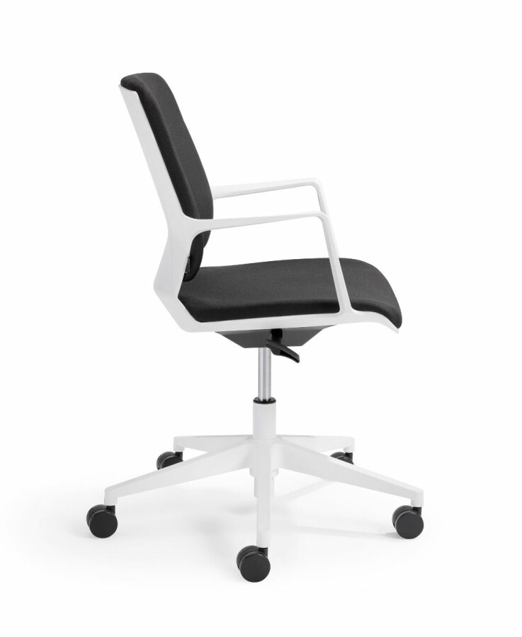 Het slanke onderstel is leverbaar in zwart of wit en standaard voorzien van 60 mm wielen voor vlotte verplaatsing tussen ruimtes. Precies wat moderne, flexibele werkplekken vragen: een professionele uitstraling, weinig gedoe, veel gebruiksgemak.