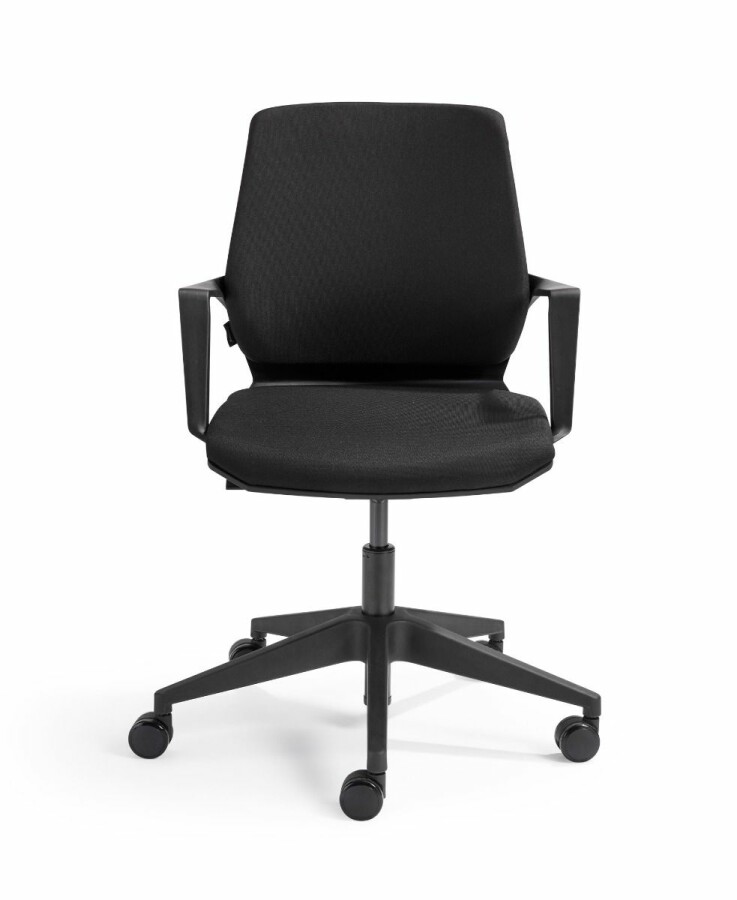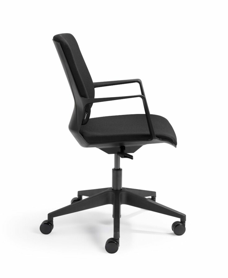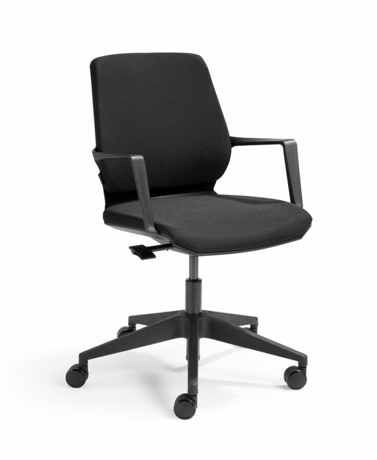 De X-Meeting is jouw no-nonsense vergaderstoel op wielen: comfortabel, mobiel en direct inzetbaar. Met zijn zwarte, slijtvast gestoffeerde zitting en rug (100.000 Martindale) zit je stabiel en prettig – of je nu snel stand-up overlegt of urenlang brainstormt. De traploos verstelbare zithoogte van 44–59 cm maakt hem geschikt voor uiteenlopende gebruikers en tafelhoogtes, van projectruimte tot directiekamer.