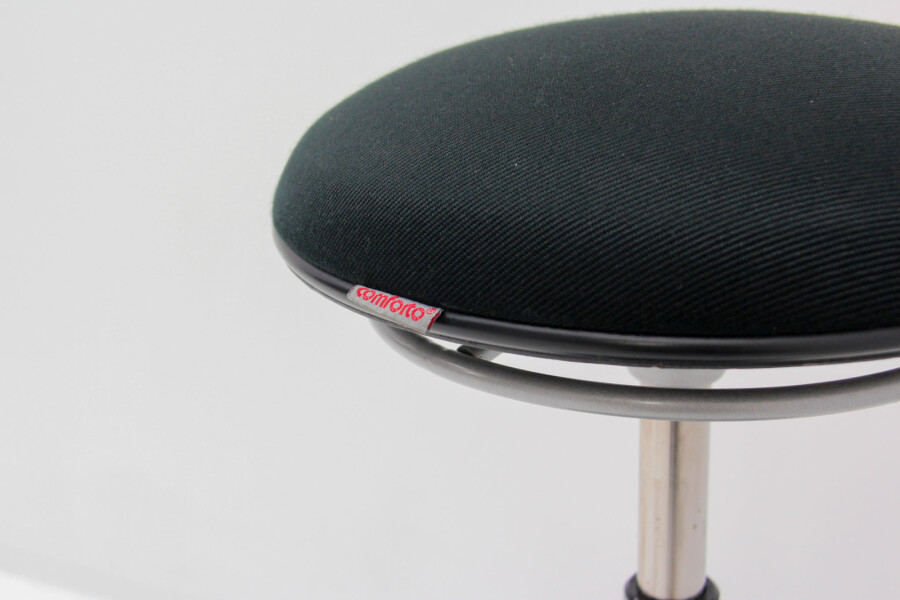 Dankzij de traploos verstelbare zithoogte van 58 tot 87 cm pas je de Comforto moeiteloos aan elke werkhoogte aan. De compacte zitting met grof gestoffeerde bekleding in zwart zorgt voor een stevige grip en aangenaam comfort, terwijl de ronde voetplaat maximale stabiliteit biedt tijdens gebruik.