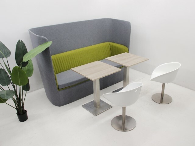 Creëer een gezellige zithoek met deze complete set. De hoge bank van Gispen geeft je privacy en werkt geluidsdempend. De bijpassende salontafels en kuipstoelen nodigen uit tot ontspanning en informele gesprekken. De foto wijkt af. Beschikbaar met 1 tafel. Eventueel beschikbaar met 2 andere tafels.